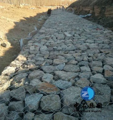 石籠網(wǎng)是使填石固定就位的鐵絲或聚合物絲網(wǎng)格式制作物。鐵絲籠是由鐵絲編織的網(wǎng)格或焊接而成的結(jié)構(gòu)物。這兩種結(jié)構(gòu)可以是電鍍的,編織的鐵絲箱可另外涂上PVC。用抗風(fēng)化堅(jiān)硬石塊作填料,它在石箱或石籠沉排中不會(huì)因磨蝕而很快破碎。裝有不同類型的塊石的石籠有不同的特性。多角的塊石能相互很好地聯(lián)鎖在一起,用其填裝的石籠不易變形。